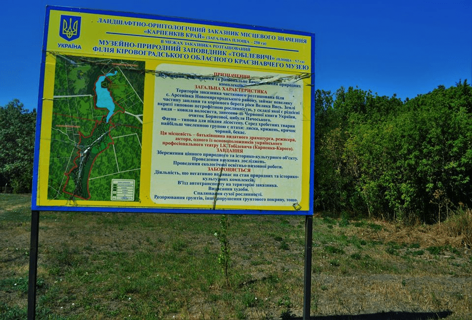 Еще один уникальный природный ландшафтный заказник – «Карпенко край». Находится он на территории Новомиргородского района. Часть заповедника раскинулась и на Маловисковском районе. Земли заказника занимают площадь почти 250 га, а доехать туда можно через села Марьяновка и Арсеньевка.