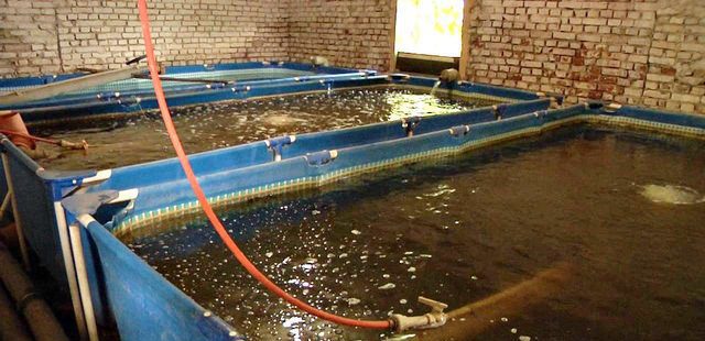 Воду для бассейнов с рыбой берут из скважины, дальше ее подготавливают, потому что каждый тип рыбы особенный. Он требует разного температурного режима, регулирования кислорода. Далее подготовленную воду подают в бассейны. После этого вода откачивается и проходит через специальные фильтры. В них происходит очистка воды от частиц жизнедеятельности рыбы.