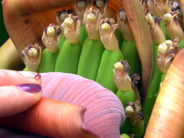 Елена объяснила, что к сентябрю фрукты созревают и под каждым листочком можно заметить 15 небольших бананов.