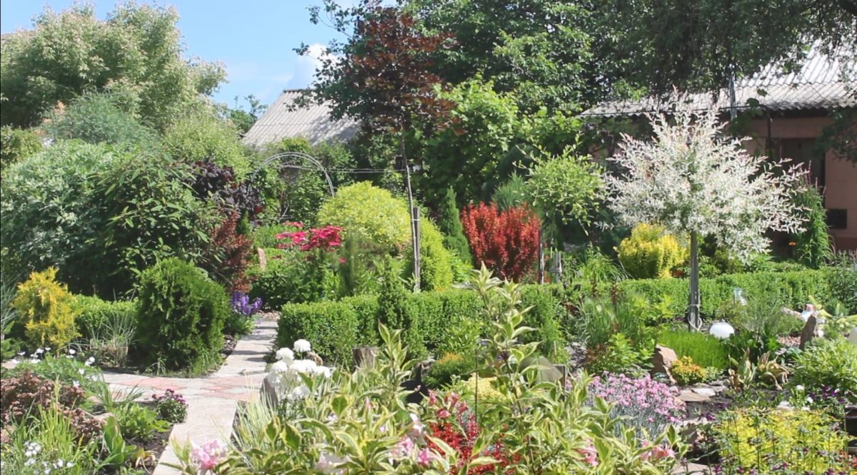 Ландшафтный дизайн дендропарка Татьяна разрабатывала сама. Здесь есть много лиственных деревьев, хвойных, декоративных кустов, ароматных трав и цветов. Каждое растение хорошо сочетается между собой. Когда женщина начинала оформлять свой сад, люди смеялись, что она сама возит камни для клумб, никто не верил в ее замысел.