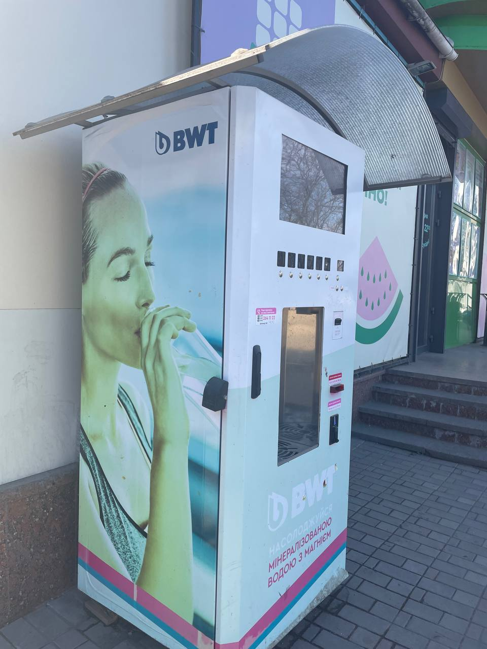Аквабокси BWT розміщуються головним чином біля входу у супермаркети.